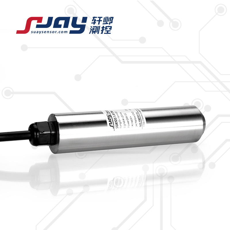 SUAY20通用液位變送器使用MEMS技術為核心的高靈敏度硅壓阻感壓芯片,是基于流體靜力學原理,通過對液體壓強的測量轉換為液位高度。該產品結構可靠,帶通氣導管的液位測量專用電纜及專業的水密封技術,既保證了產品的密封性,又使得參考壓力腔與大氣相通,從而使該系列產品的使用不受不同地域環境的限制,既保證了產品的長期穩定性,又極大提高了該款液位變送器的綜合使用精度。全密封潛入式測量,一體化結構和標準化的輸出信號,為現場使用和自動化控制提供了方便。再通過合理的選擇、設計接液材料、電纜、護管等,可對不同介質的液位進行投入式或插入式測量,適用于用于城市供排水、污水處理、水池、水文檢測、水庫、河道、海洋等水下長期測量。